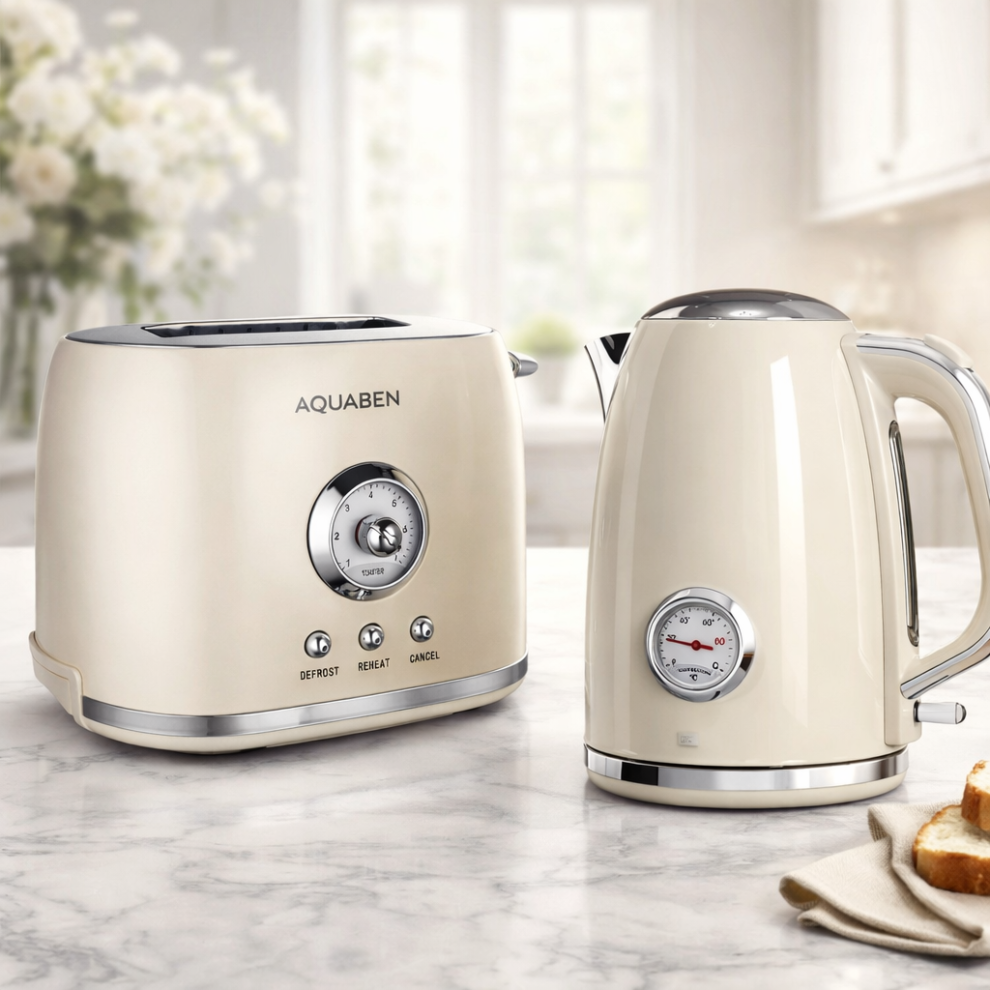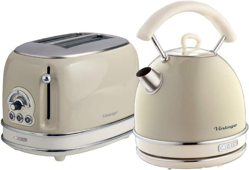 Ariete Vintage/Retro Style Dome Kettle & 2Slice Toaster Set AR7703, AR5513 Beige