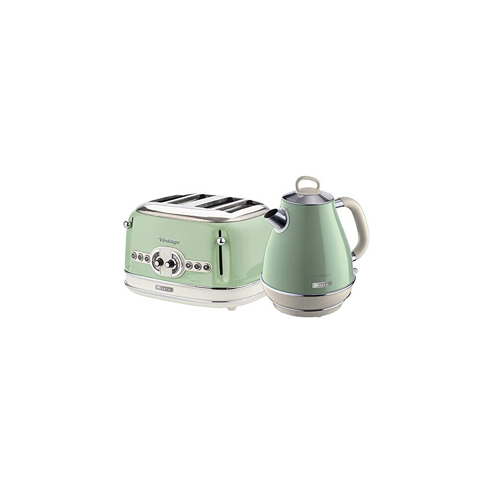 Ariete Breakfast Pack Ariete ARPK20 Retro Style Jug Kettle and 4 Slice Toaster Set, Vintage Design, Green
