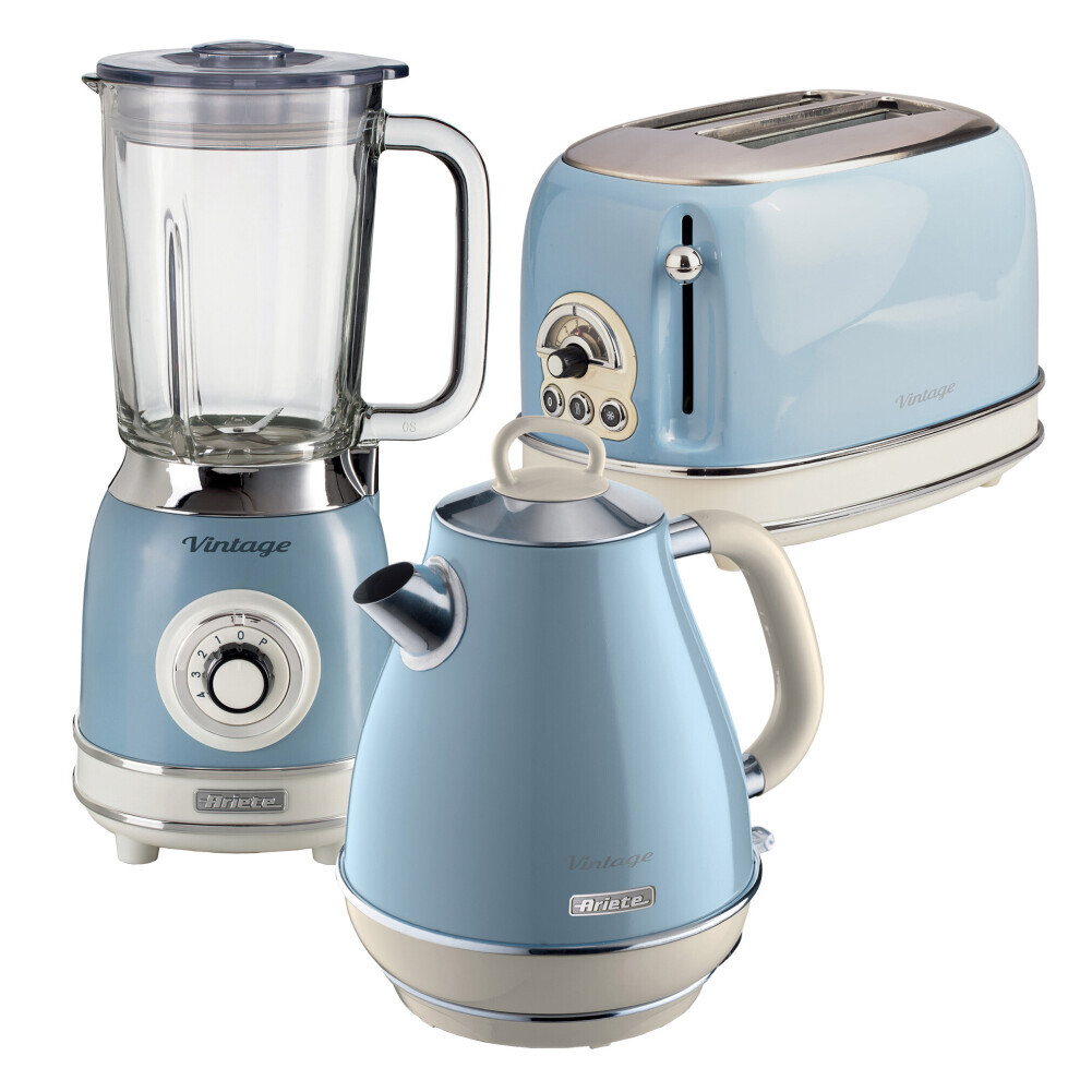 Ariete ARPK27 Retro Style Dome Kettle, Toaster & Jug Blender Set, Vintage Design, Blue