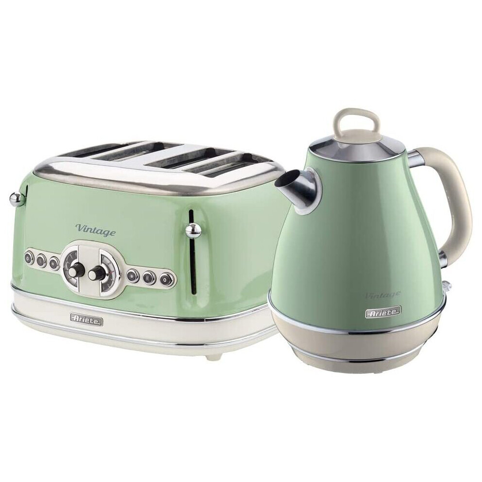 Ariete Vintage/Retro Style Jug Kettle and Toaster Pack - Green AR5514, AR6904
