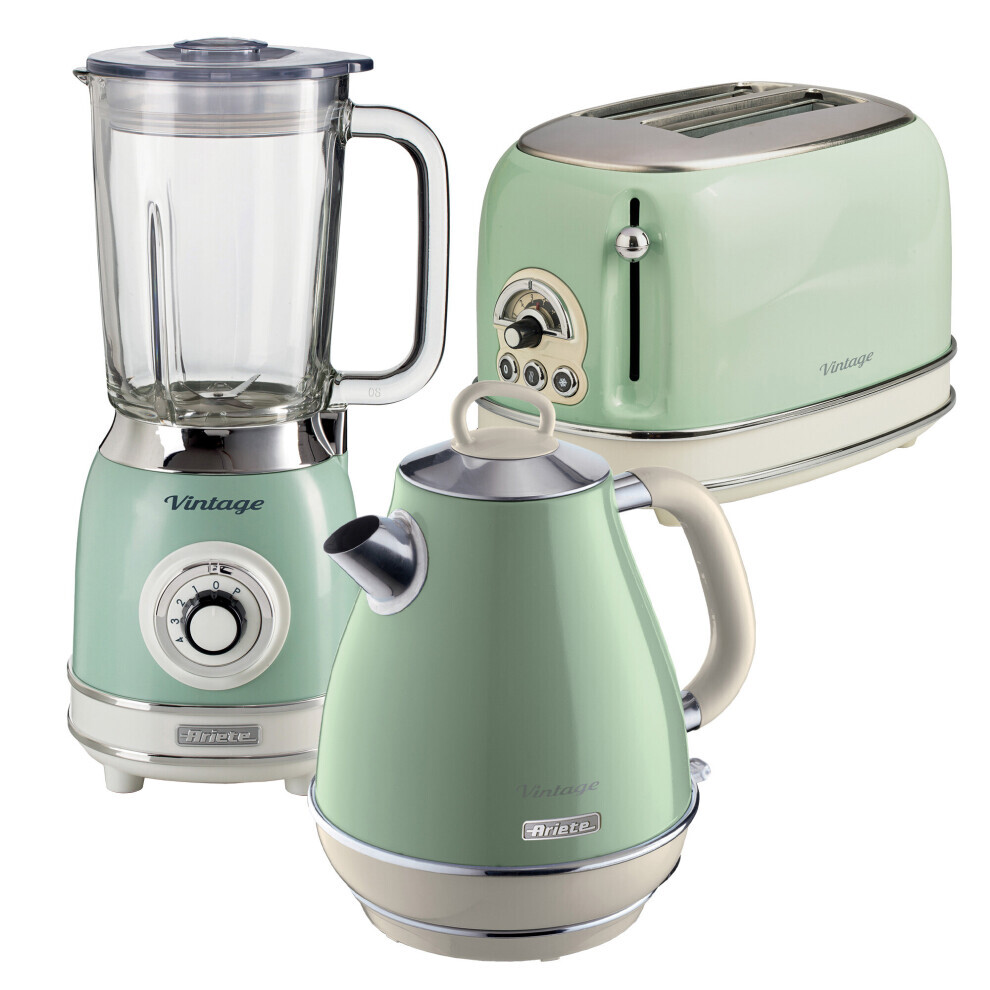 Ariete ARPK23 Retro Style Jug Kettle, Toaster & Jug Blender Set, Vintage Design, Green