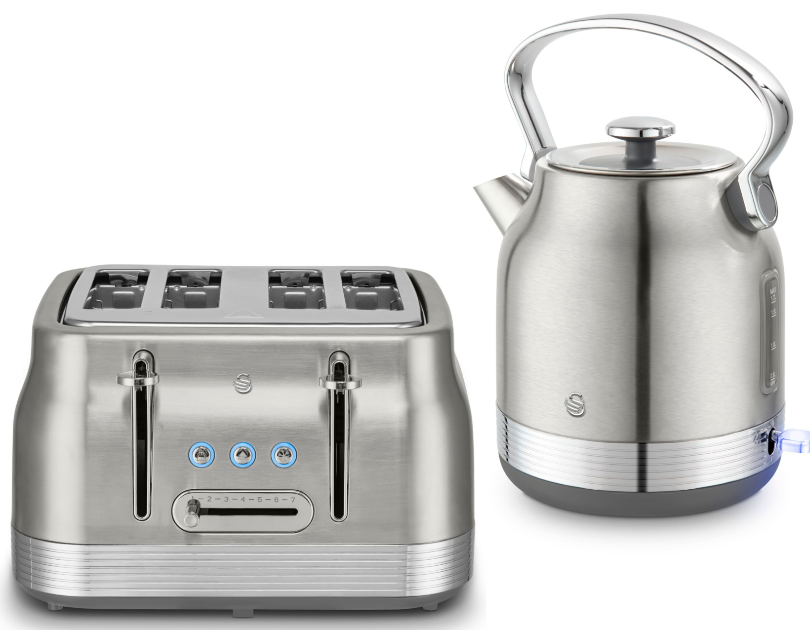 Swan Retro Revive Stainless Steel StoveTop Style Kettle & 4 Slice Toaster Silver