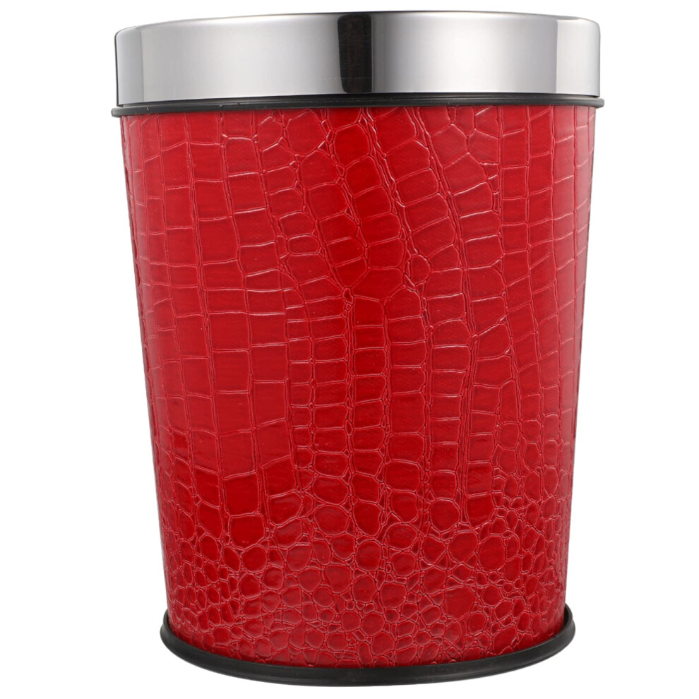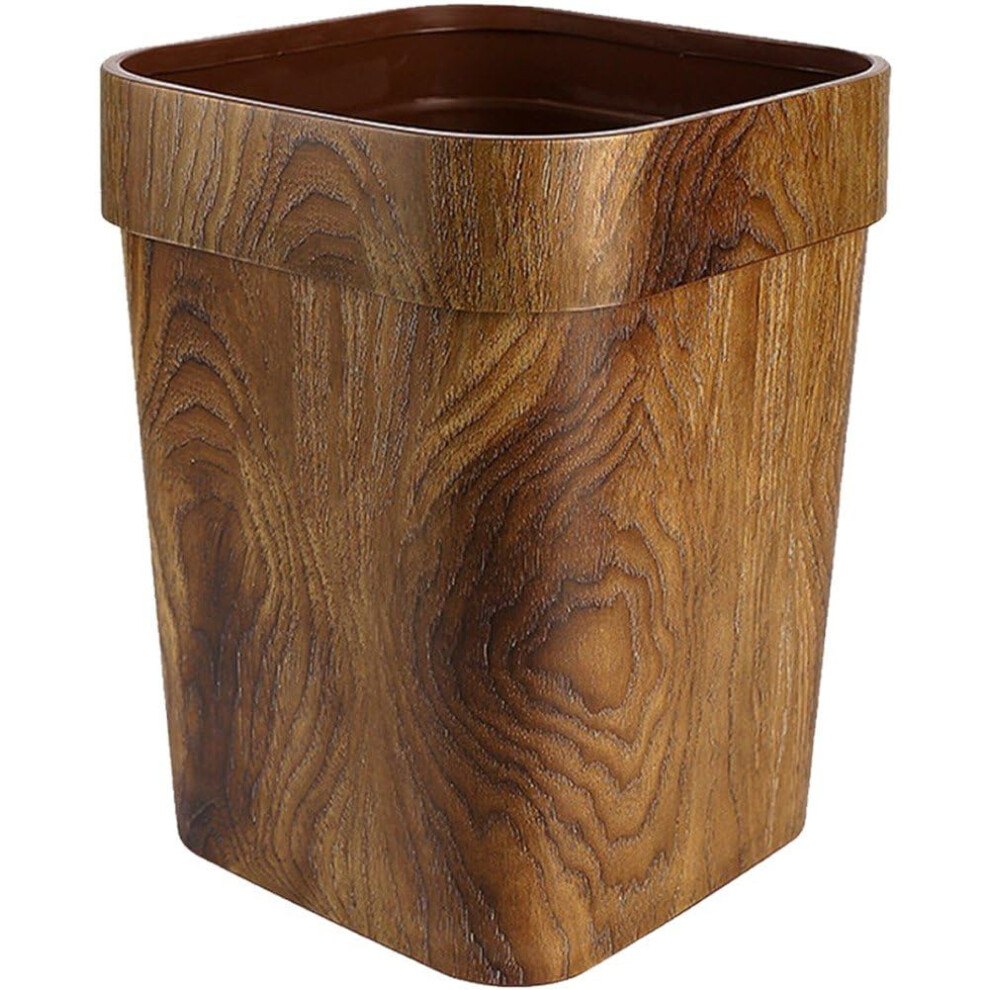 Wood Grain Trash Can Large Capacity Retro Style Garbage Bin with Pressing Ring for Kitchen Bathroom 26.6x22.1cm