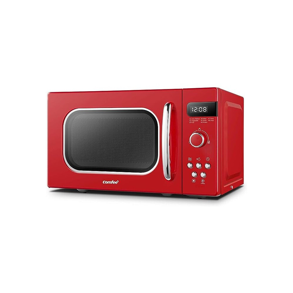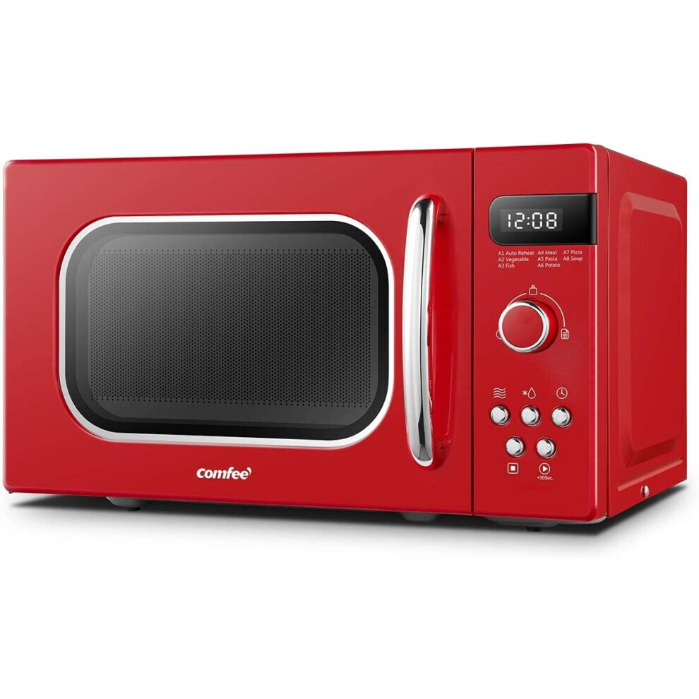 COMFEE' Retro Style 800w 20L Microwave Oven with 8 Auto Menus, 5 Cooking Power Levels, and Express Cook Button - Passionate Red - CM-M202RAF(RD)