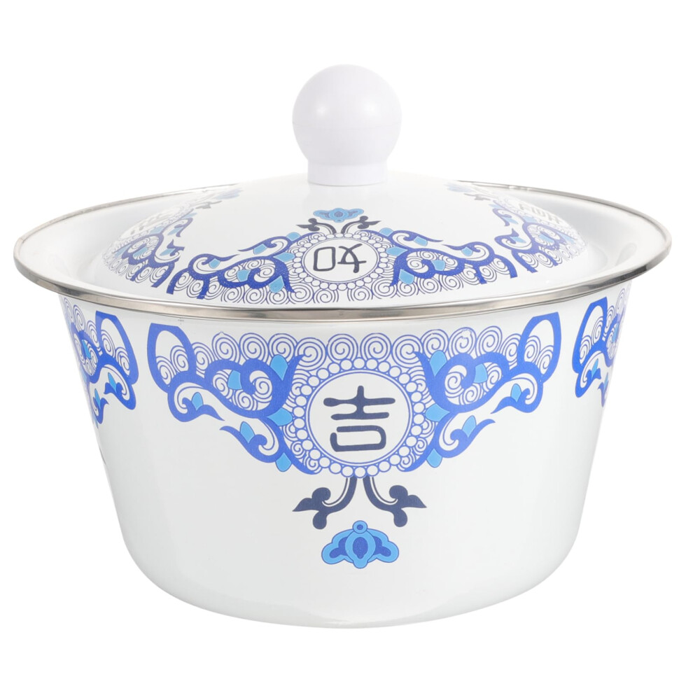 Large Capacity Enamel Soup Bowl with Handles, Retro Vintage Style, Microwave Safe with Lid