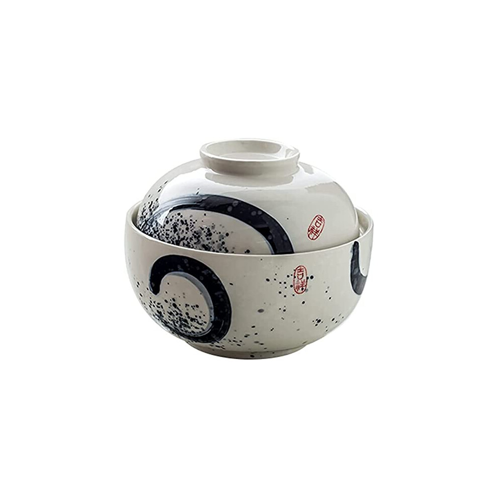 Large Microwave Safe Ceramic Soup Bowl with Lid, Retro Style, Heat Resistant, Gray 17cm