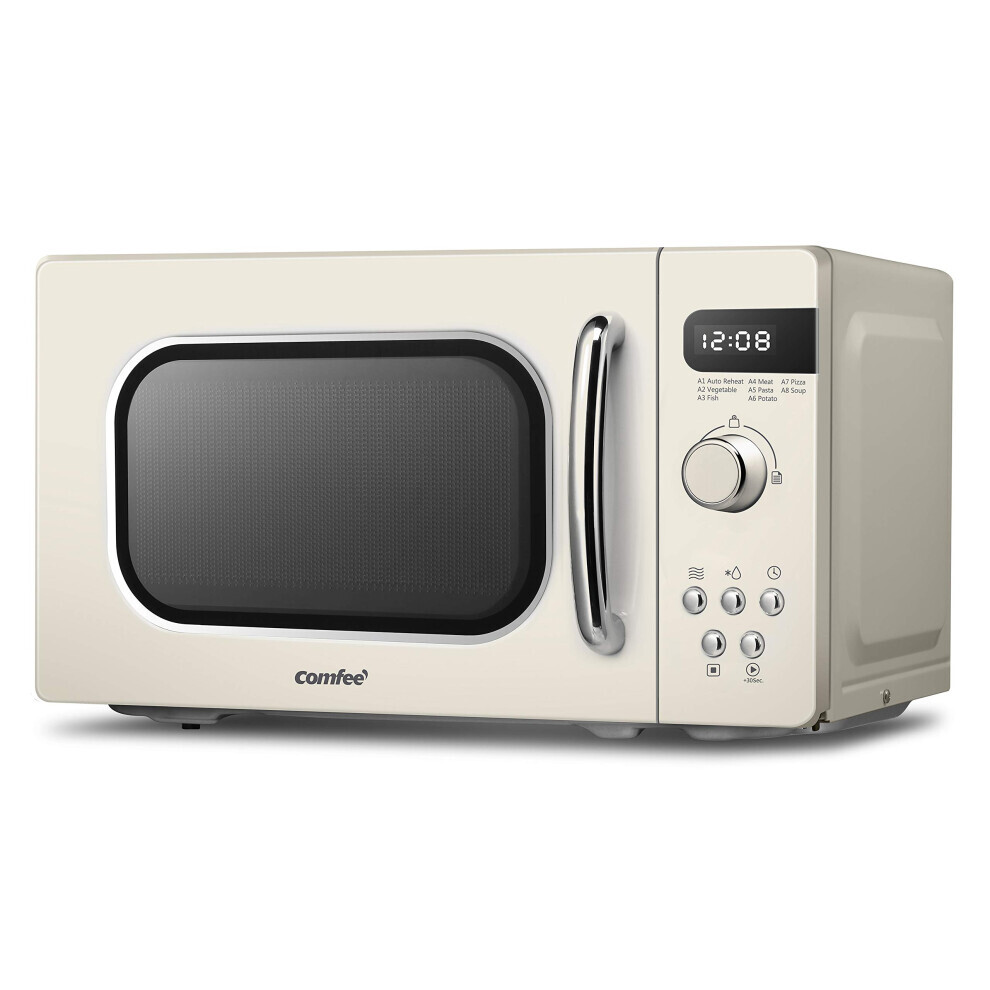 COMFEE' Retro Style 800w 20L Microwave Oven with 8 Auto Menus, 5 Cooking Power Levels, and Express Cook Button - Apricot Cream - CM-M202RAF(CM)