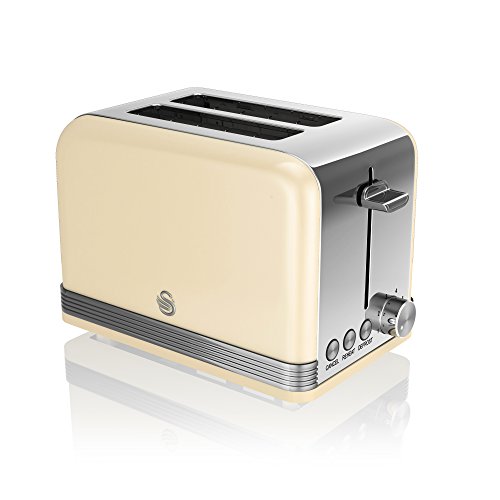 Swan ST19010CN Cream 2 Slice Retro Toaster, Stainless Steel, 815 W
