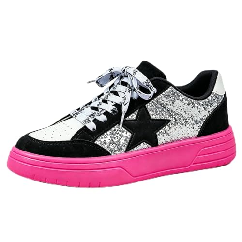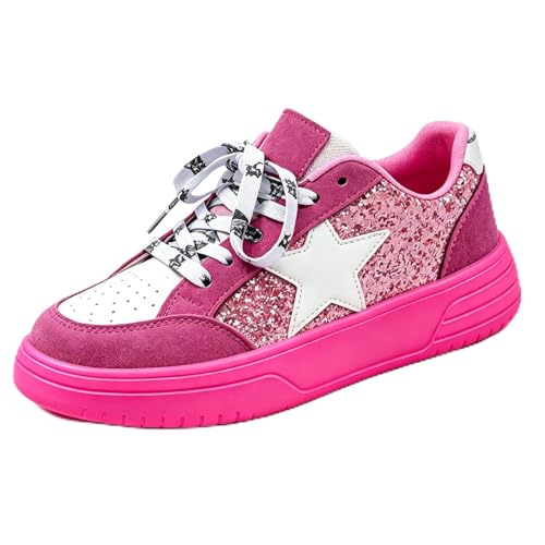 Generisch Women's Trainers Star Lace-Up Shoes Skirt Glitter Platform Shoes 80s Bi-Colour Skater Shoes Neon Low Shoes Y2K Airy Non-Slip Slippers Retro Running Shoes Harajuku Trainers, Style X03 Pink, 7