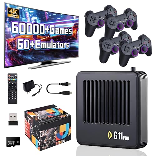 KINMRIS G11 Pro Game Box 4K, Video Game Console 256GB with Built in 60000+ Retro Games 60+ Emulators, with 4 x 2.4G Wireless Controller, Plug and Play Retro TV Games, 3D Dual Joysticks