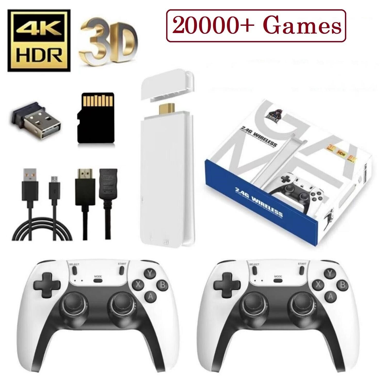 Video Game Console Retro 20000+ Games TV Stick 64G 4K HDMI 2Wireless Controller