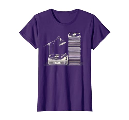 Retro Vinyl Records Player Lover Music Vintage Vinyl Record T-Shirt, Women, Purple, Small