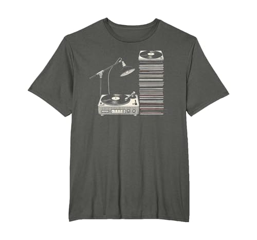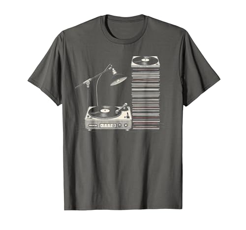 Retro Vinyl Records Player Lover Music Vintage Vinyl Record T-Shirt, Men, Asphalt Grey, Large