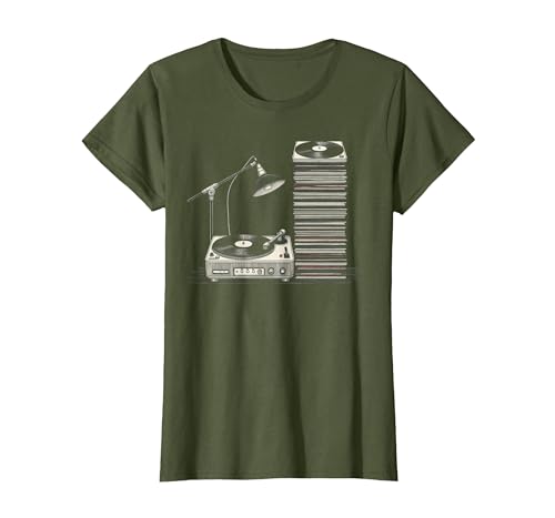Retro Vinyl Records Player Lover Music Vintage Vinyl Record T-Shirt, Women, Olive Green, Medium