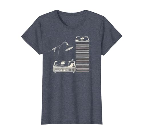 Retro Vinyl Records Player Lover Music Vintage Vinyl Record T-Shirt, Women, Heather Blue, X-Large