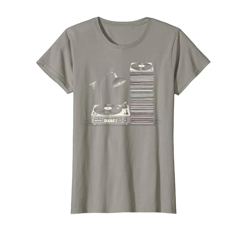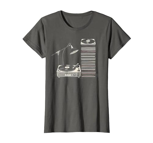 Retro Vinyl Records Player Lover Music Vintage Vinyl Record T-Shirt, Women, Asphalt Grey, Small