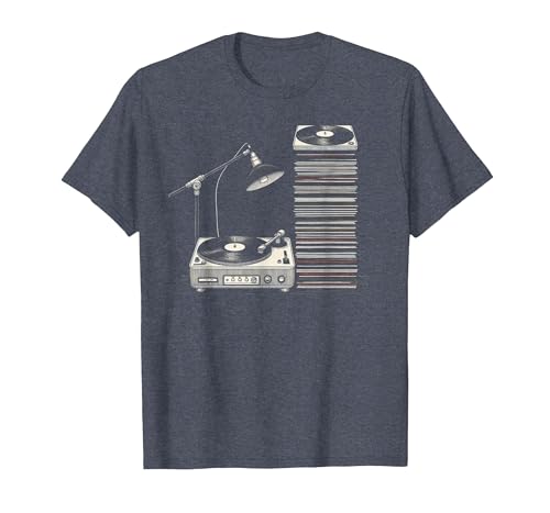 Retro Vinyl Records Player Lover Music Vintage Vinyl Record T-Shirt, Men, Heather Blue, Large