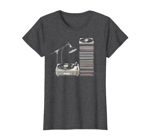 Retro Vinyl Records Player Lover Music Vintage Vinyl Record T-Shirt, Women, Dark Heather Grey, Small