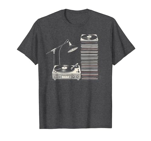 Retro Vinyl Records Player Lover Music Vintage Vinyl Record T-Shirt, Men, Dark Heather Grey, Large