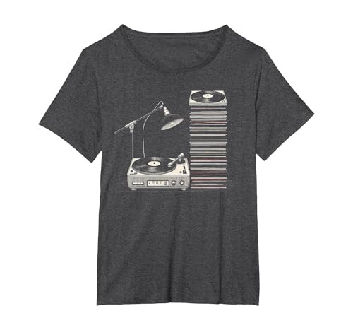 Retro Vinyl Records Player Lover Music Vintage Vinyl Record T-Shirt, Women's Plus, Dark Heather Grey, 2X