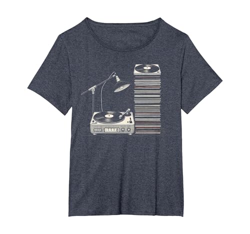 Retro Vinyl Records Player Lover Music Vintage Vinyl Record T-Shirt, Women, Heather Blue, 3X-Large