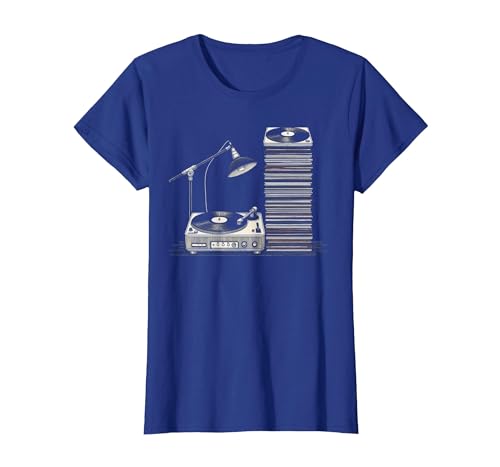 Retro Vinyl Records Player Lover Music Vintage Vinyl Record T-Shirt, Women, Royal Blue, Large