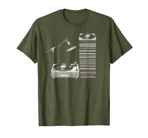 Retro Vinyl Records Player Lover Music Vintage Vinyl Record T-Shirt, Men, Olive Green, Large