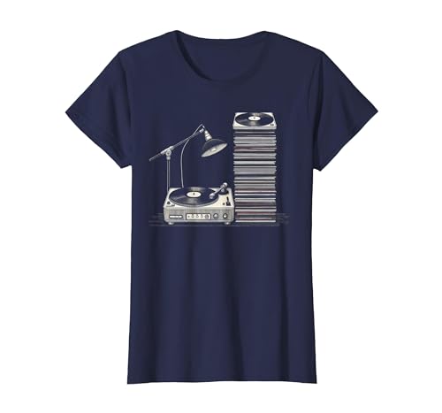 Retro Vinyl Records Player Lover Music Vintage Vinyl Record T-Shirt, Women, Navy Blue, Small