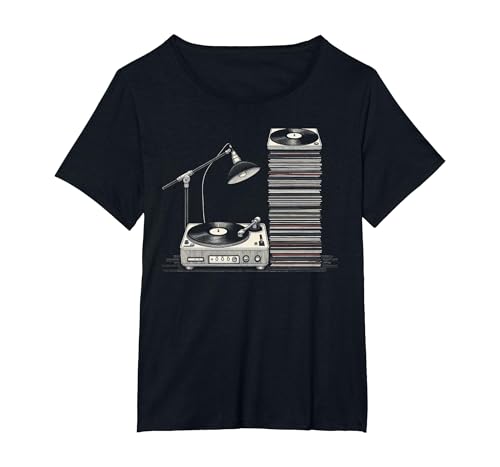 Retro Vinyl Records Player Lover Music Vintage Vinyl Record T-Shirt, Women's Plus, Black, 5X