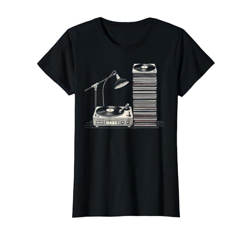 Retro Vinyl Records Player Lover Music Vintage Vinyl Record T-Shirt, Women, Black, Small