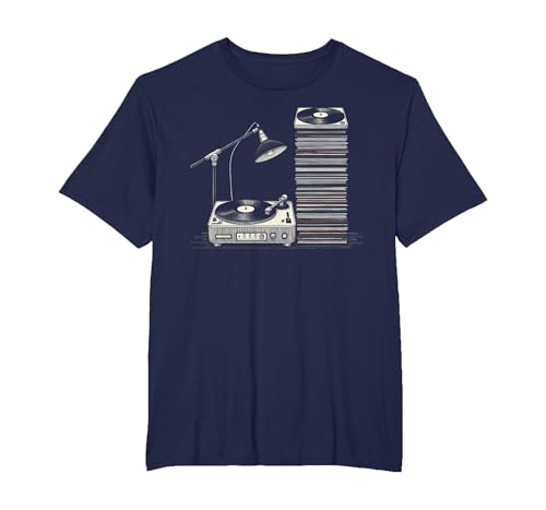 Retro Vinyl Records Player Lover Music Vintage Vinyl Record T-Shirt, Men, Navy Blue, Large