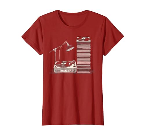 Retro Vinyl Records Player Lover Music Vintage Vinyl Record T-Shirt, Women, Cranberry Red, X-Small