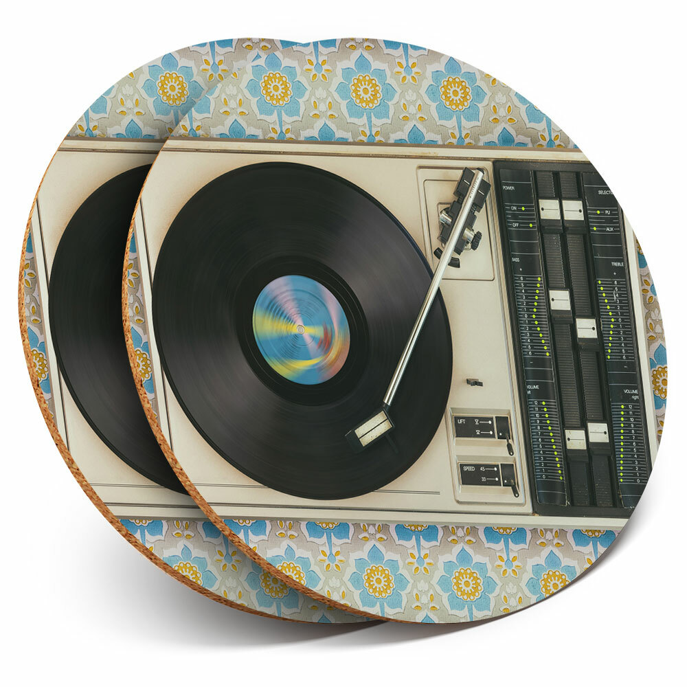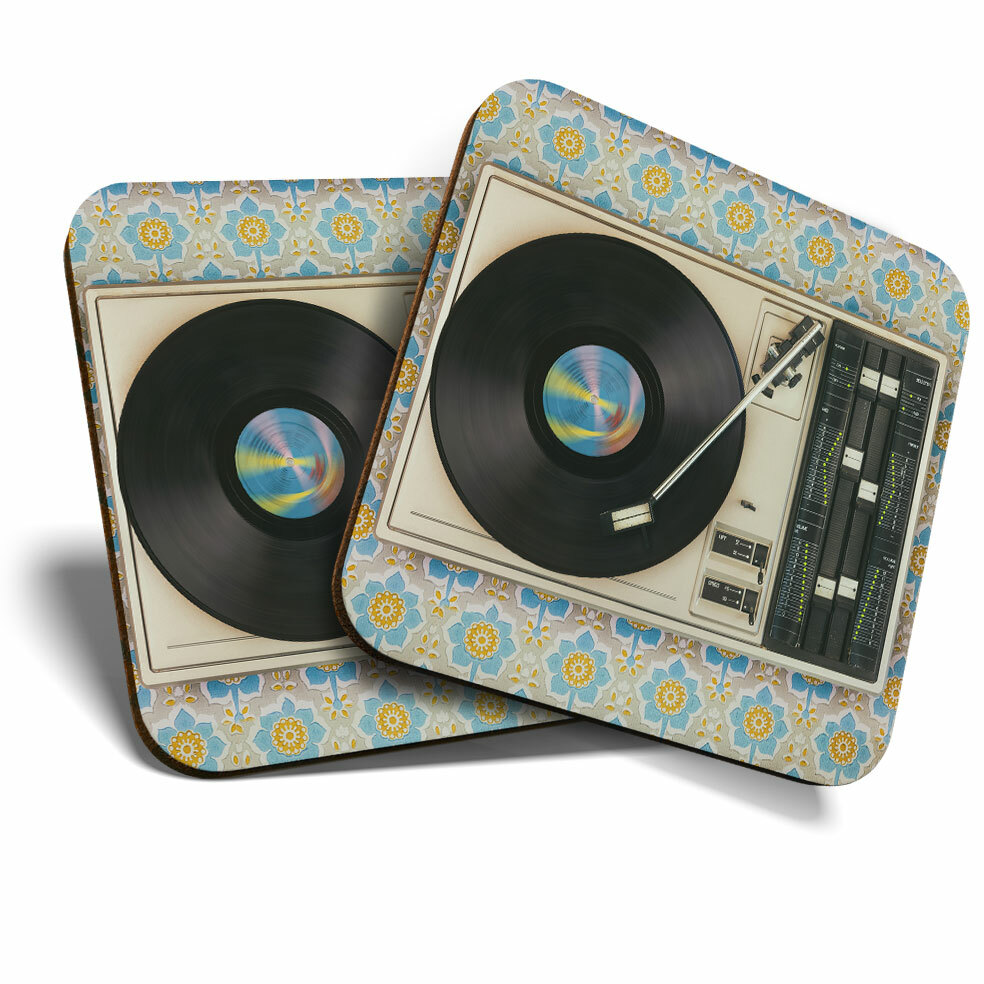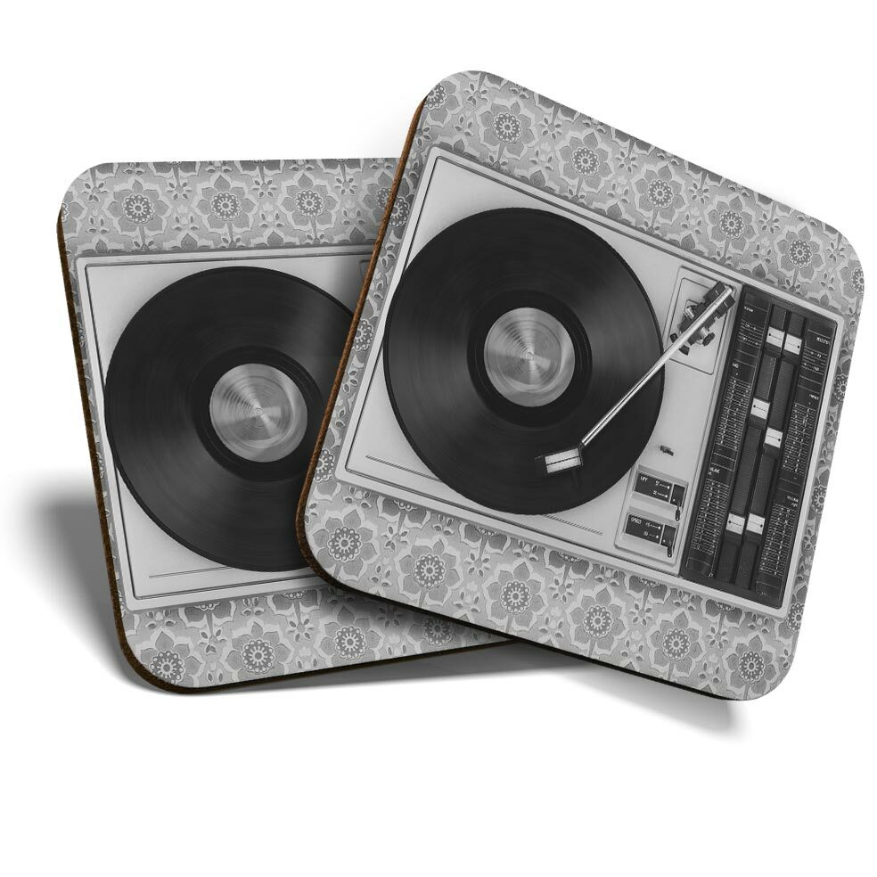 2 x Coasters - Retro Old Vinyl Record Player Music Home Gift #24109