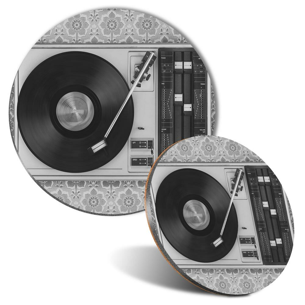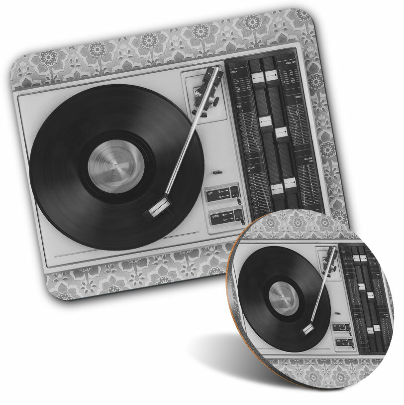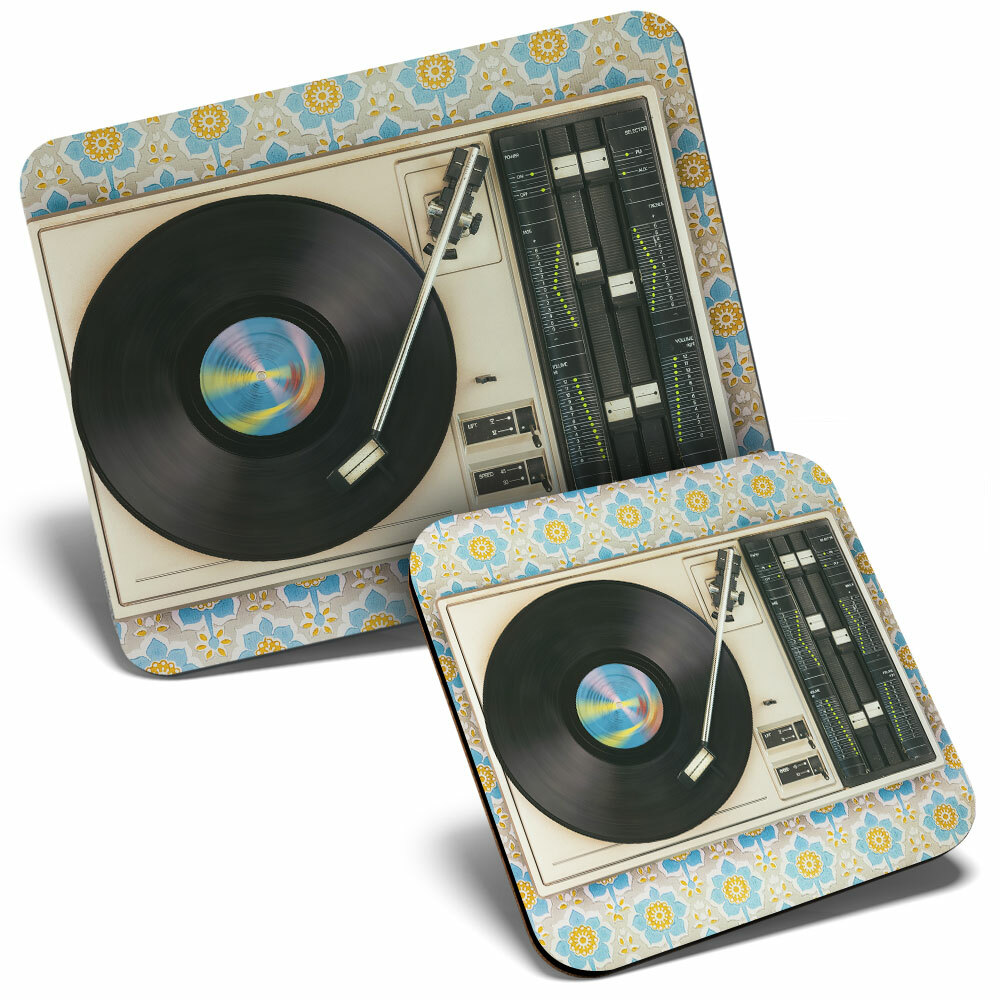 Mouse Mat & Coaster Set - Retro Old Vinyl Record Player Music #24109