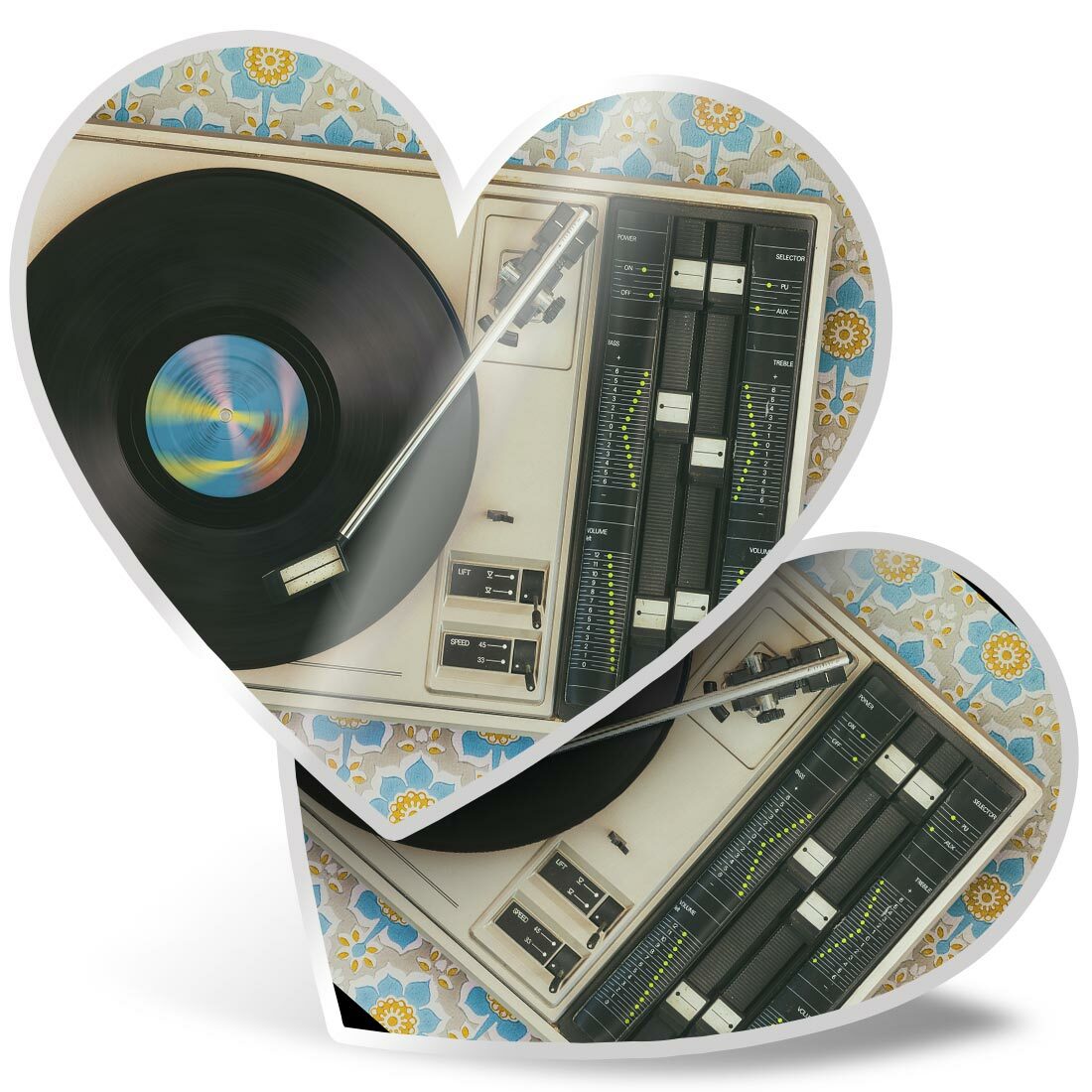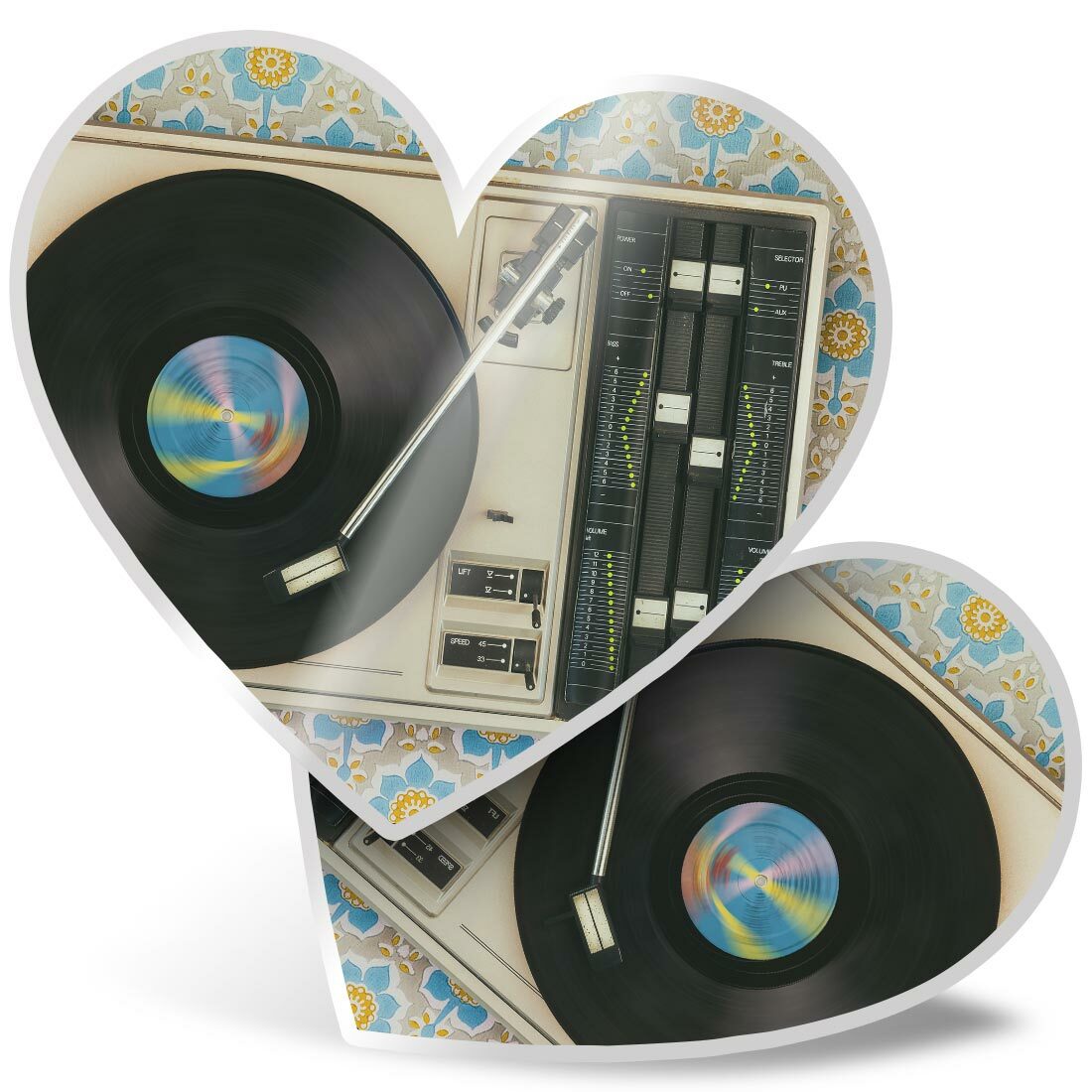2 x Heart Stickers 10 cm - Retro Old Vinyl Record Player Music #24109