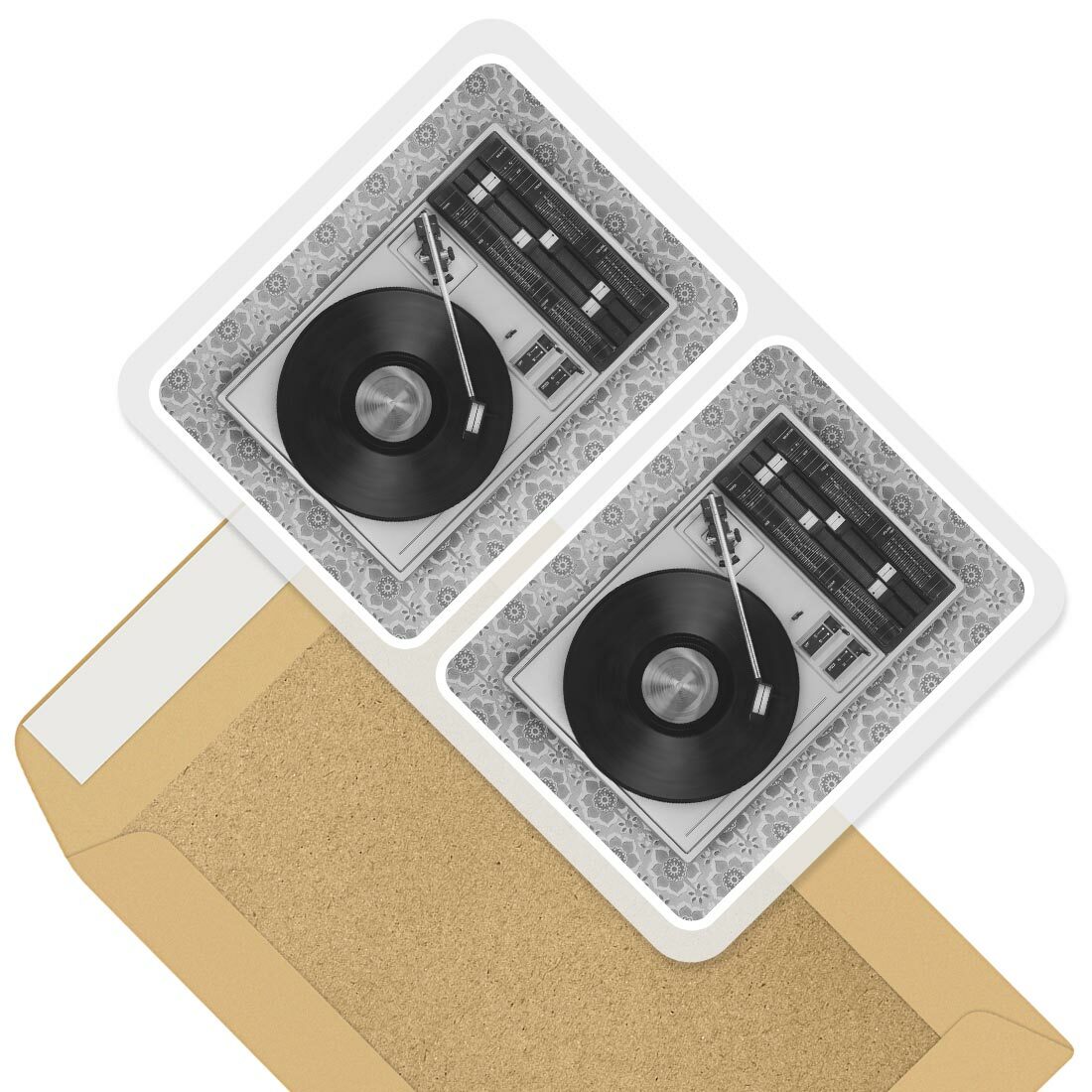 2 x Coasters bw - Retro Old Vinyl Record Player Music #43444