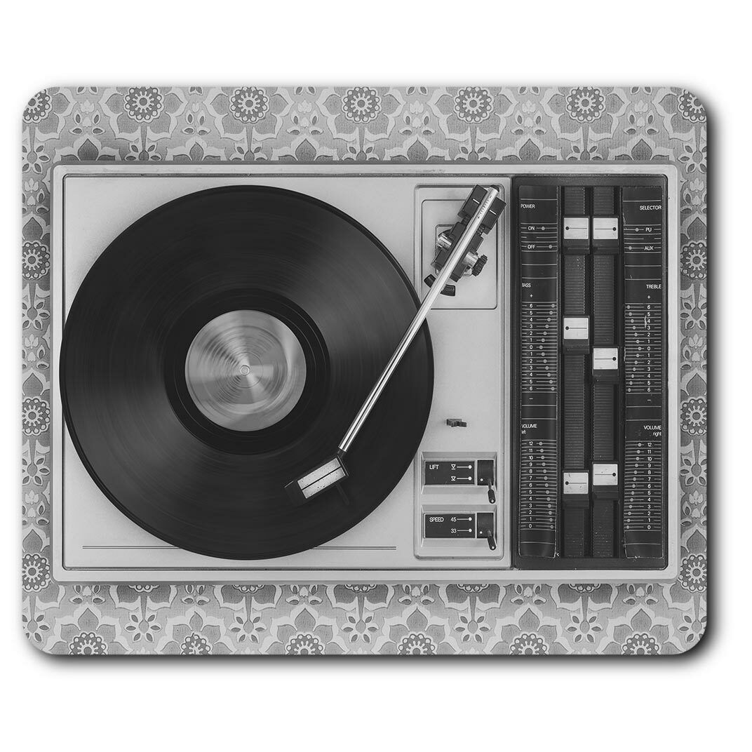 Rectangle Mouse Mat BW - Retro Old Vinyl Record Player Music #43444