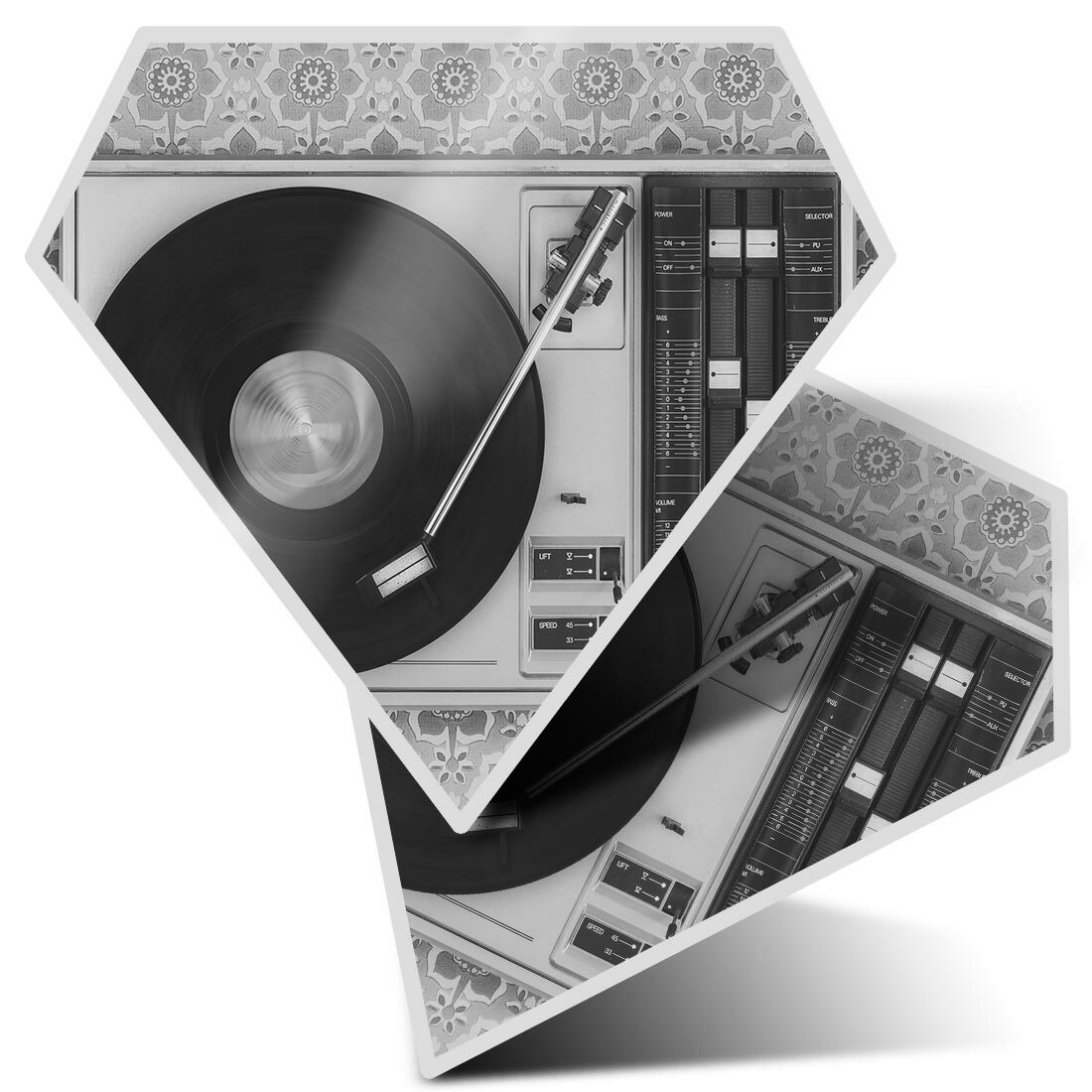 2 x Diamond Stickers 10 cm BW - Retro Old Vinyl Record Player Music #43444