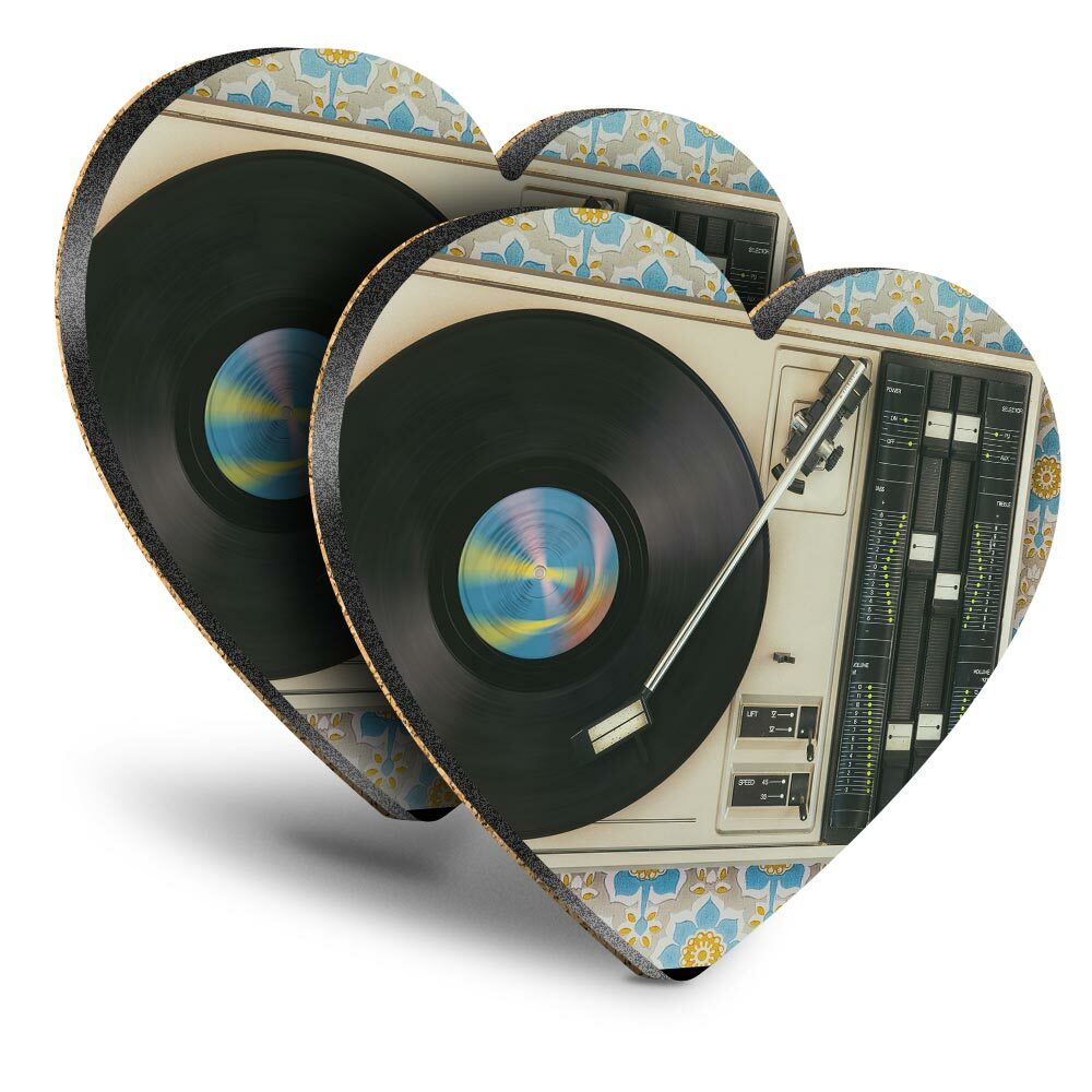 2x Heart MDF Coasters - Retro Old Vinyl Record Player Music #24109