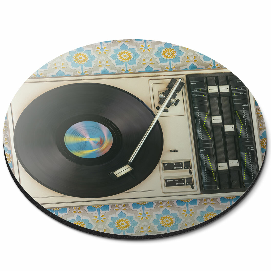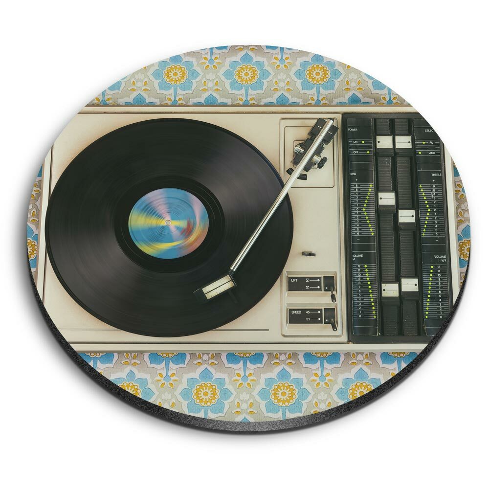 Round Mouse Mat - Retro Old Vinyl Record Player Music Office Gift #24109