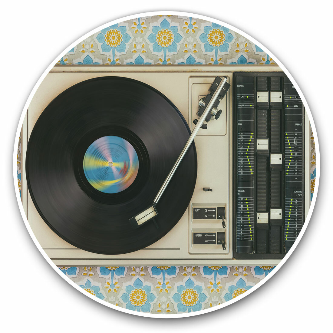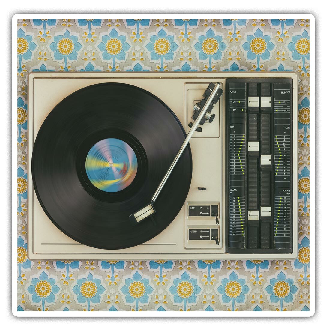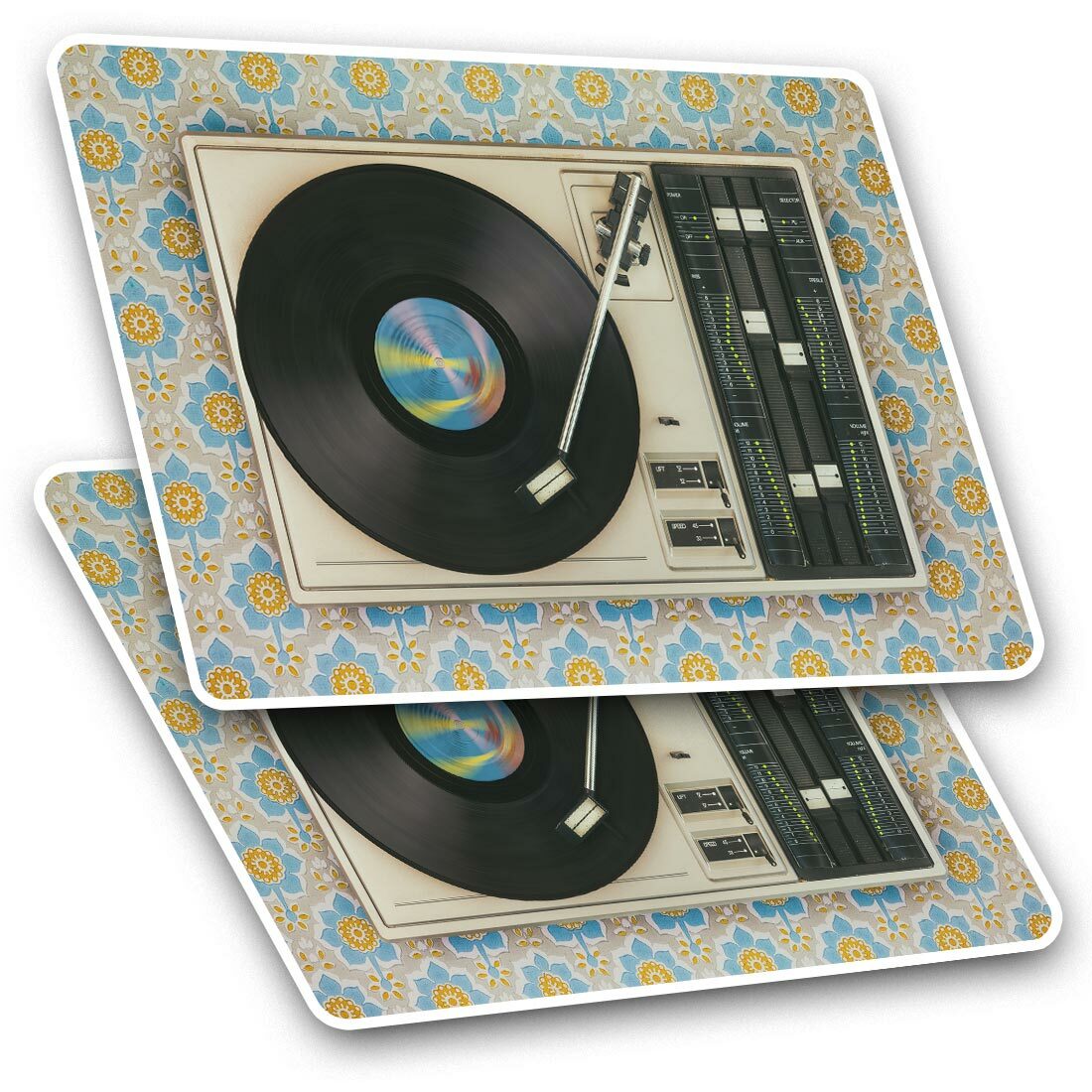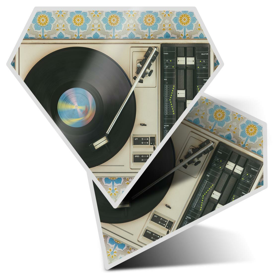 2 x Diamond Stickers 10 cm - Retro Old Vinyl Record Player Music #24109