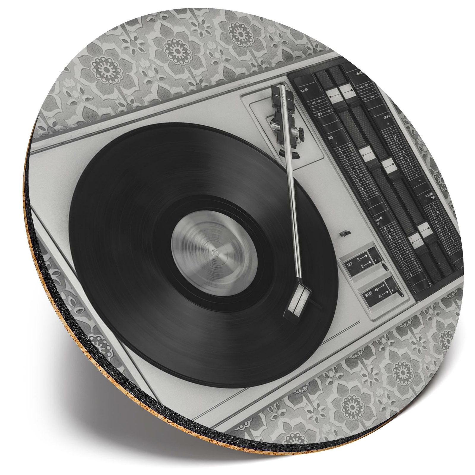Round Single Coaster - BW - Retro Old Vinyl Record Player Music #43444