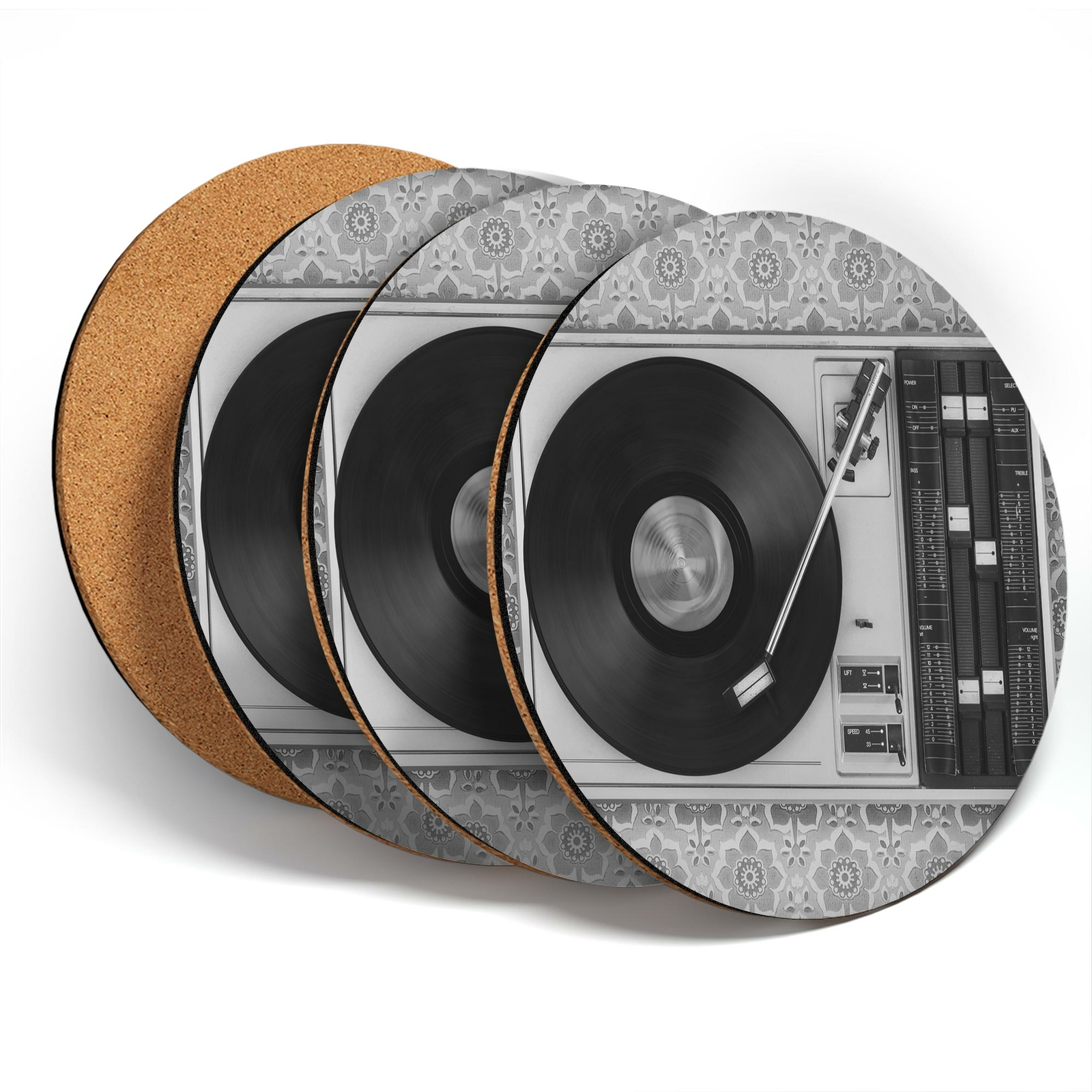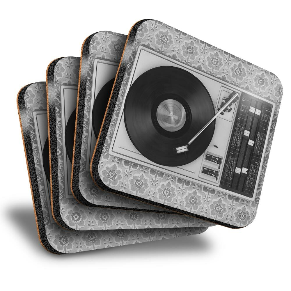 4 x Coasters - BW - Retro Old Vinyl Record Player Music #43444