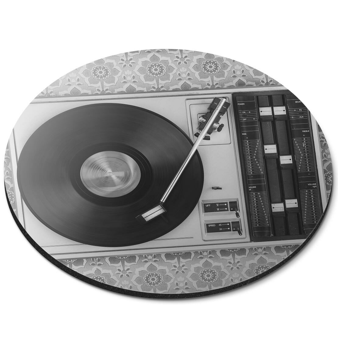 Round Mouse Mat (bw) - Retro Old Vinyl Record Player Music #43444