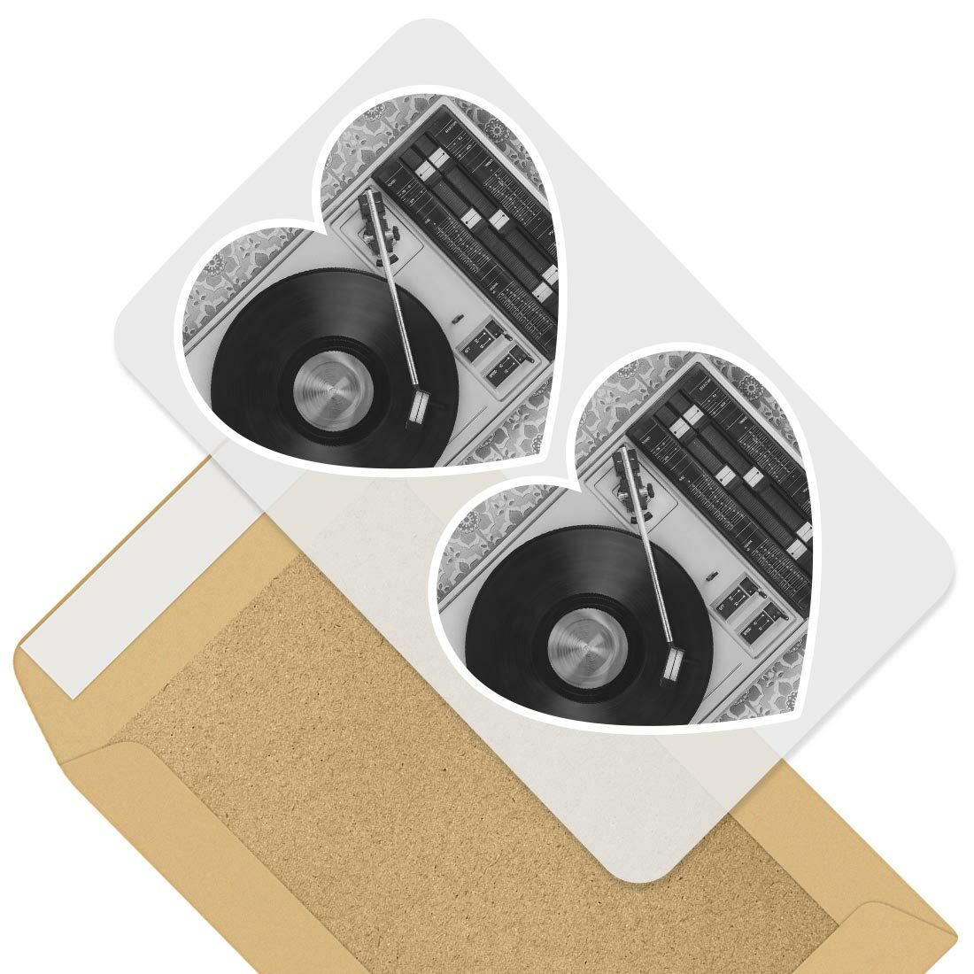 2 x Heart Stickers 10 cm - BW - Retro Old Vinyl Record Player Music #43444