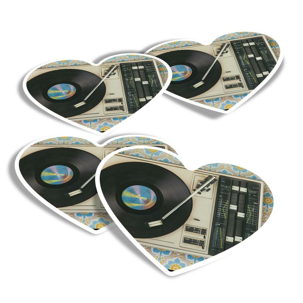 4x Heart Stickers - Retro Old Vinyl Record Player Music #24109