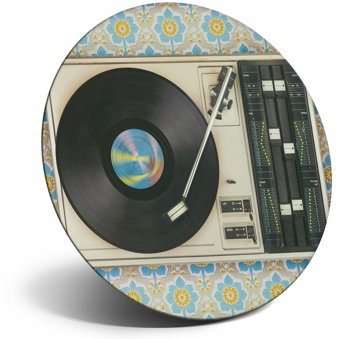 Round MDF Magnets - Retro Old Vinyl Record Player Music #24109