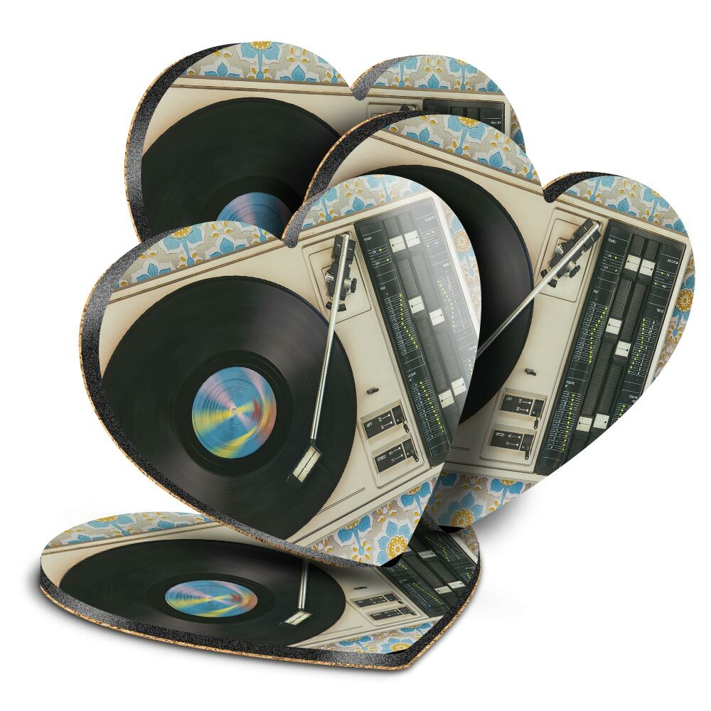 4x Heart MDF Coasters - Retro Old Vinyl Record Player Music #24109