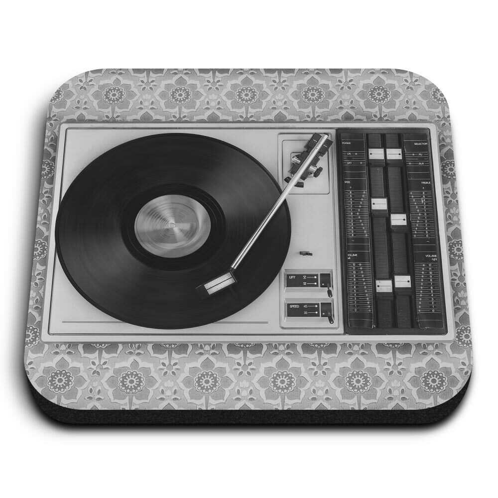 Mouse Mat & Coaster Set - BW - Retro Old Vinyl Record Player Music #43444