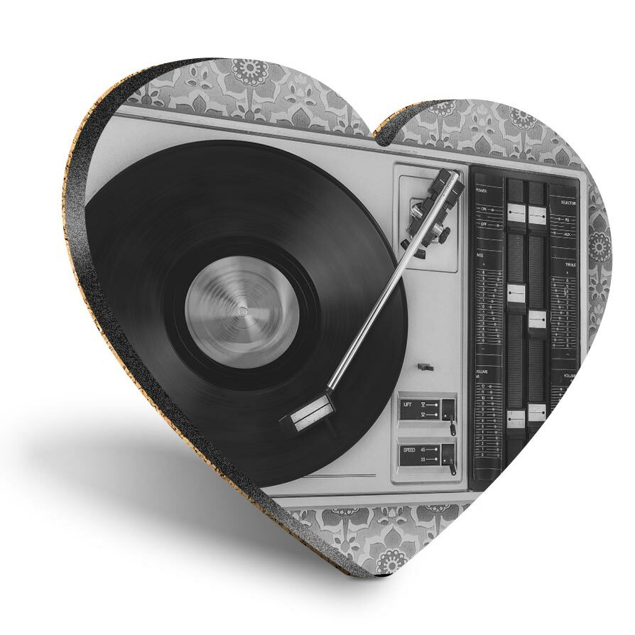 Heart MDF Coasters - BW - Retro Old Vinyl Record Player Music #43444